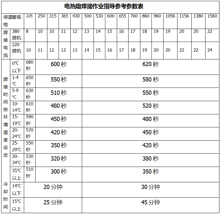 焊接參數(shù)設(shè)定表(因受環(huán)境影響較大,可根據(jù)現(xiàn)場情況各參數(shù)上下浮動5%)