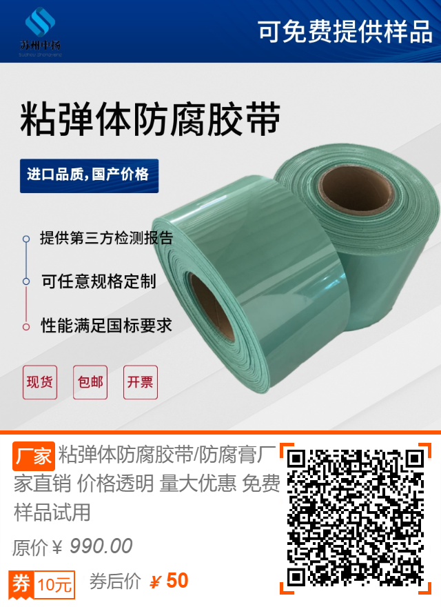 3,涂覆粘彈體防腐膏:根據(jù)異形設(shè)備防腐面積用切刀或者其它工具挖取適量的膏涂覆于設(shè)備表面,擠壓嚴(yán)實,無漏點,無空隙,并將其原本不規(guī)則的外表塑造成平滑的外型,從而利于再包覆粘彈體膠帶或者其它保護膠帶進行防腐保護。
