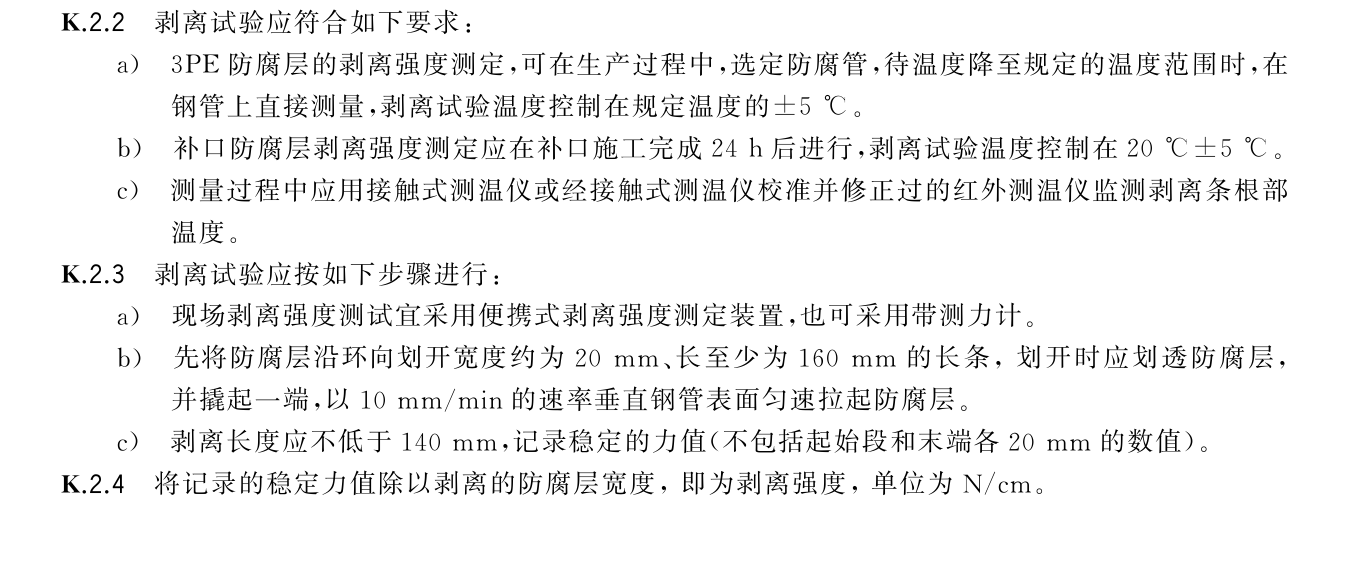 最關(guān)鍵的還是剝離強(qiáng)度測(cè)試,按國(guó)標(biāo)要求,是剝離強(qiáng)度≥50N/每公分并80%表面呈內(nèi)聚破壞狀。剝離時(shí)的管體溫度是15-25℃,環(huán)境溫度這一點(diǎn)很重要,之前有項(xiàng)目就是施工單位大夏天頂著太陽(yáng)底下做剝離,鋼管表面溫度曬到了50多℃,常溫的熱縮帶,膠層都曬軟了。